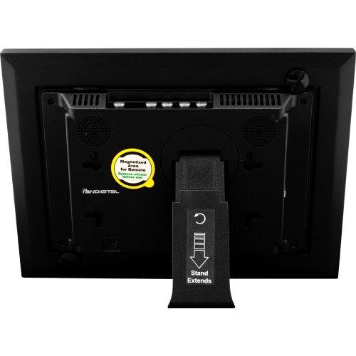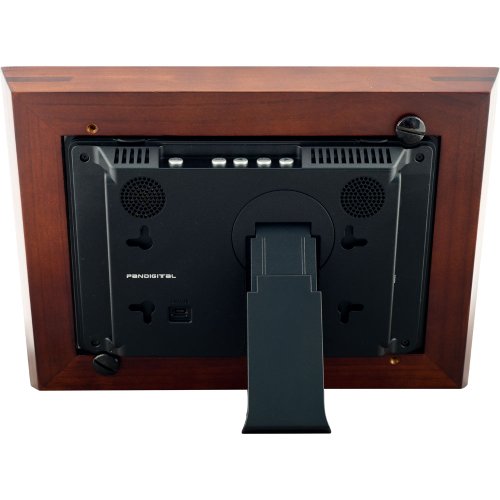 With support for AVI, MPEG-1, MPEG-2, MPEG4 and MP3 files you can enjoy music and videos, too! So, go ahead and play background music with your slideshow! You can also access files from a USB flash drive by plugging one into the built-in USB port! If you'd like, you can always copy images, videos and music from a computer to the unit's internal memory by using the USB mini B connector. The PAN90-2 includes an alarm, calendar and clock all programmable by remote control! As a bonus, a 9-inch espresso frame is thrown in for added style!